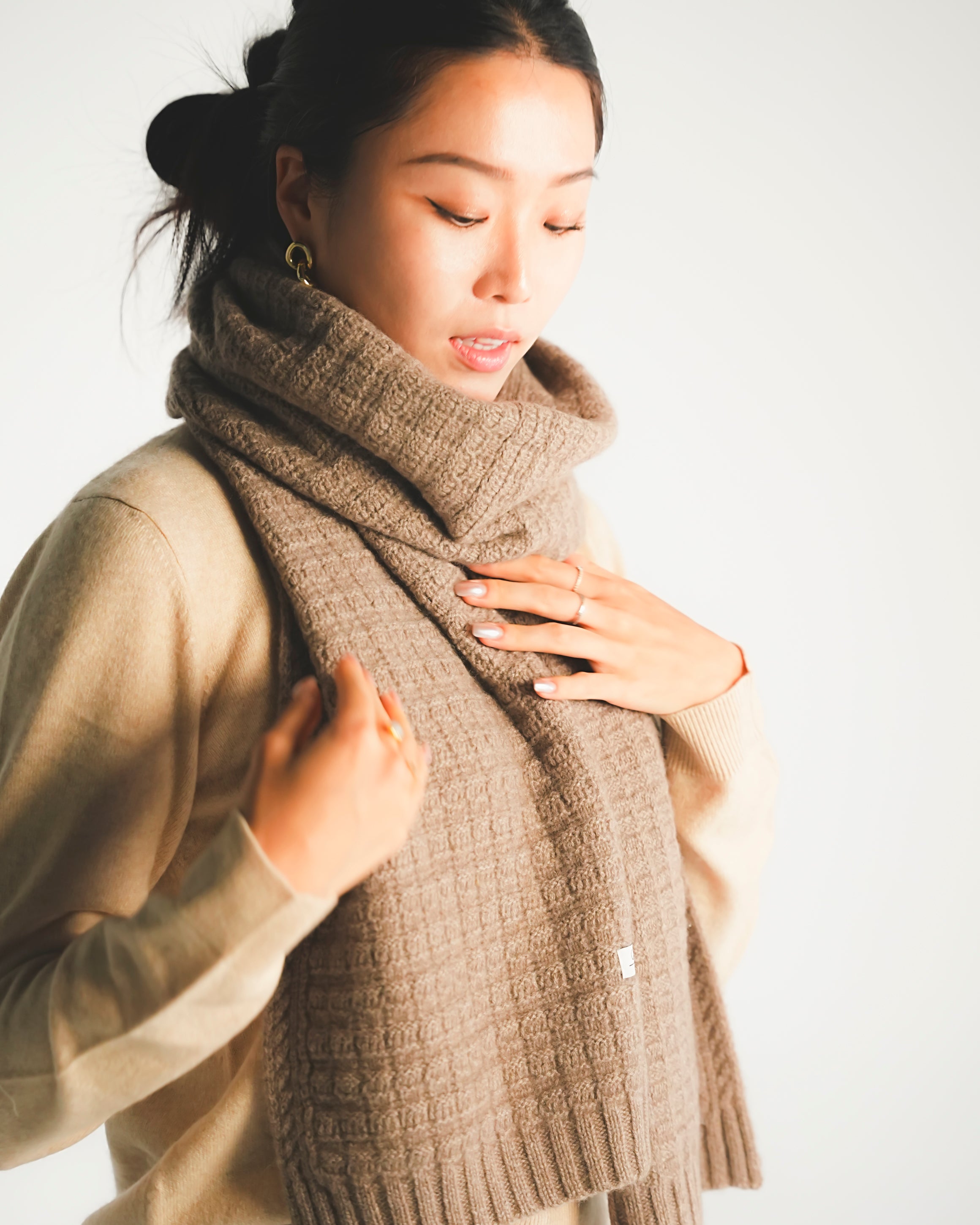 Rib-Knit Cashmere Scarf – Natural Brown