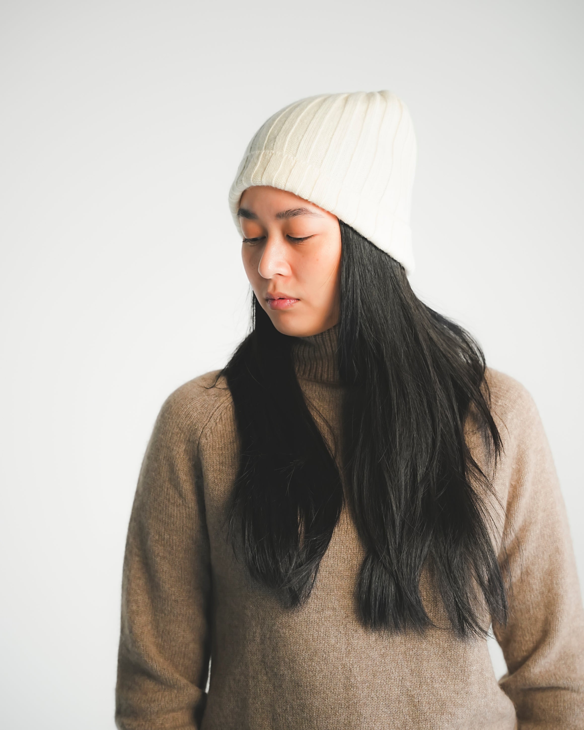 Stay effortlessly warm and stylish with this ribbed cashmere toque, crafted from 100% pure Mongolian cashmere. Its classic rib-knit texture offers a snug, flexible fit while adding timeless character to your winter look.